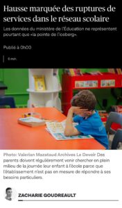 Nous dénonçons haut et fort cette déscolarisation déguisée. Ce n’est pas d’hier que nous tirons la sonnette d’alarme. Priver des élèves à besoins particuliers de scolarité sous prétexte que nous n’avons pas les ressources nécessaires pour répondre à l’intensité de leurs besoins va à l’encontre de notre contrat social d’égalité des chances et de leur droit fondamental d’aller à l’école comme tous les autres élèves. L’éducation des élèves les plus vulnérables ne doit pas être sacrifiée par manque de moyens et de volonté politique.