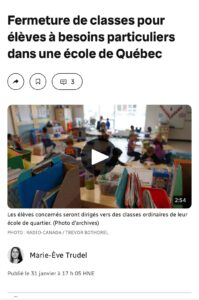 « Non seulement ces élèves-là ont la chance de se socialiser […] et inversement, [mais] les élèves qui ont un développement plus typique peuvent aussi apprendre beaucoup au niveau de l’empathie, le mieux-vivre ensemble et puis la capacité à s’adapter en contexte de diversité. Alors pour nous, c’est une solution gagnante. »
